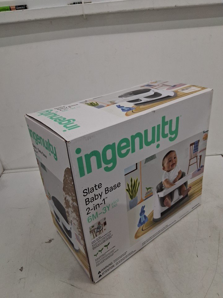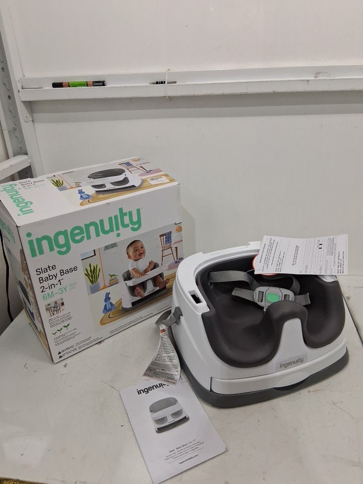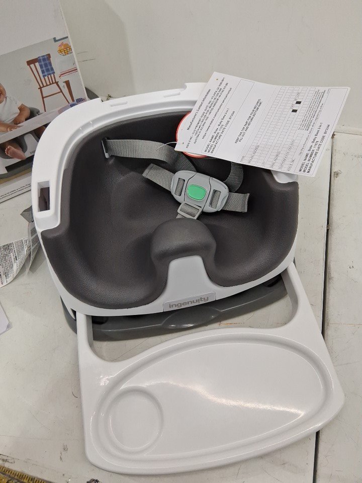 INGENUITY BABY BASE 2-IN-1 BOOSTER SEAT WITH FOOD & DRINK TRAY - 50LBS CAPACITY - WHITE/SLATE GREY - (MODEL: 11576)