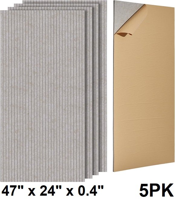 5pk acoustic soundproof polyester fiber panels with self adhesive - 47" x 24" x 0.4" - grey (model: lypc51206)
