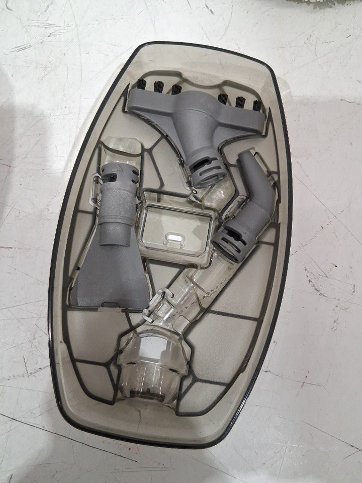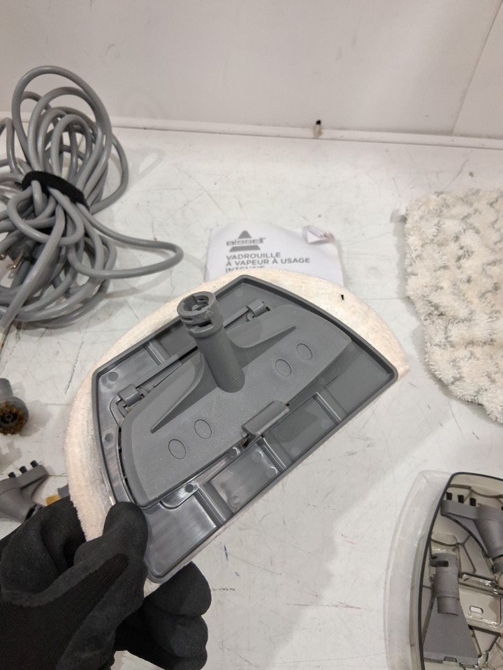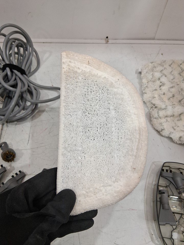 Please note that this product has been repackaged. Two of the mop pad is missing from the original packaging. There is dirt residue on the mop pad and on the accessory's attachment, there are water stains on the water tank.