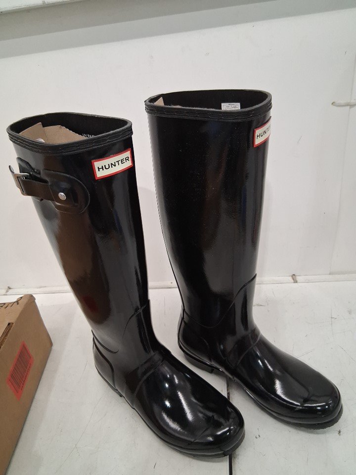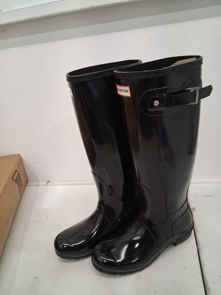 women's HUNTER Original Tall Gloss Snow Boots - size 9m - black