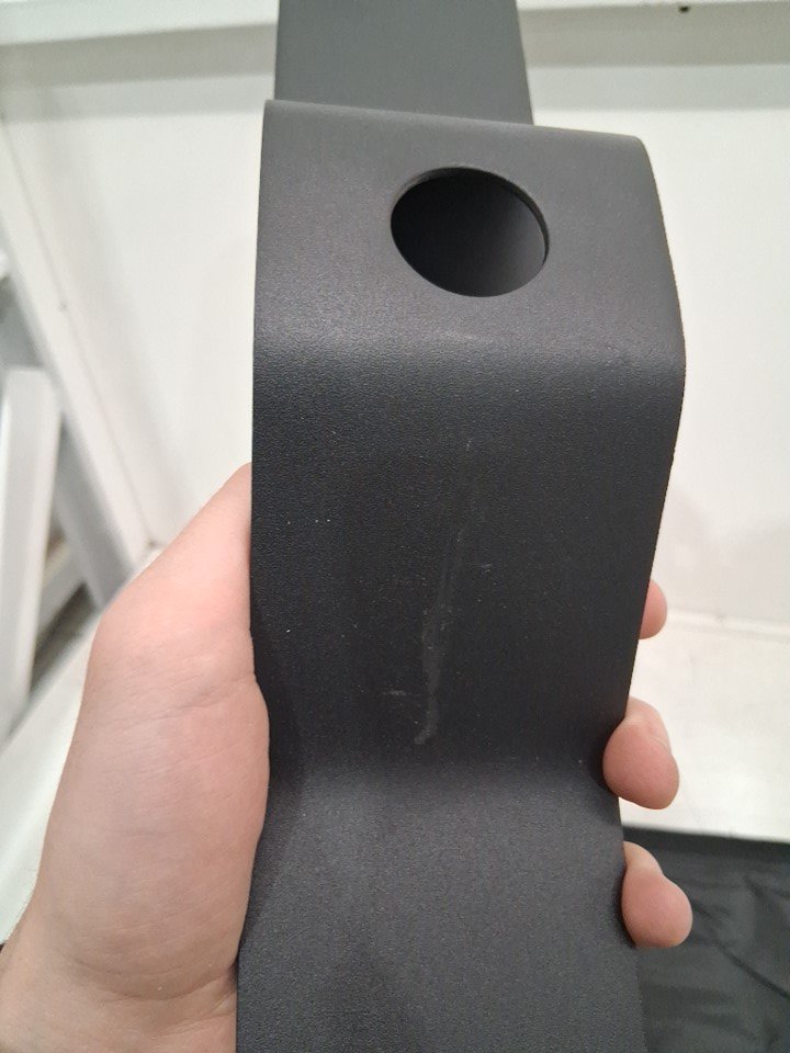 There are some paint chips/scuff marks on the poles and one faint scuff mark on one of the bases from previous use/assembly.