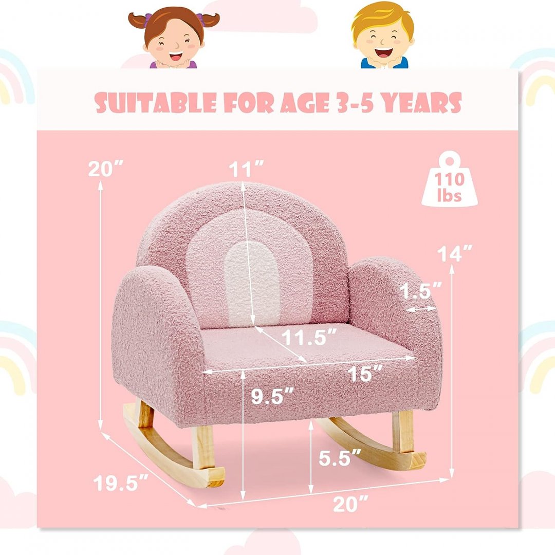 infans kids/toddler rocking chair with solid wooden frame & plush fabric - pink (model: hy10083pi)
