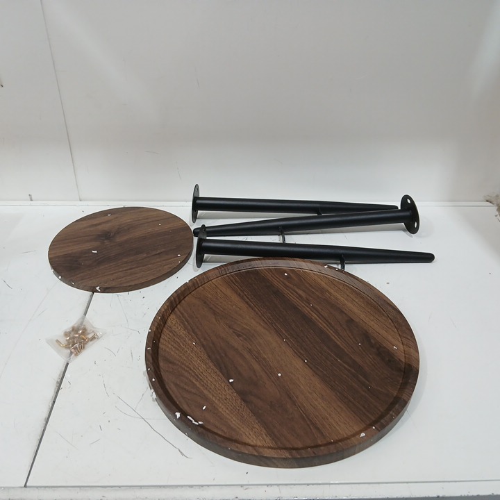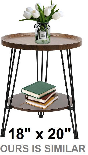 Small Round End Table with Storage Shelf - 18" x 20" - walnut brown