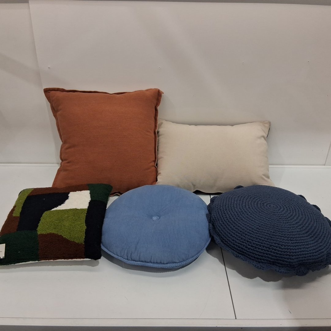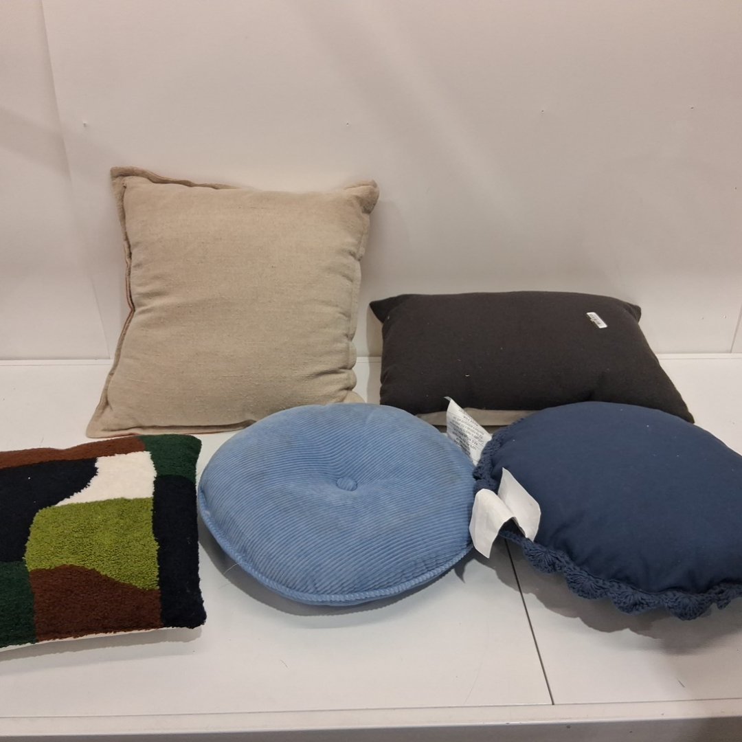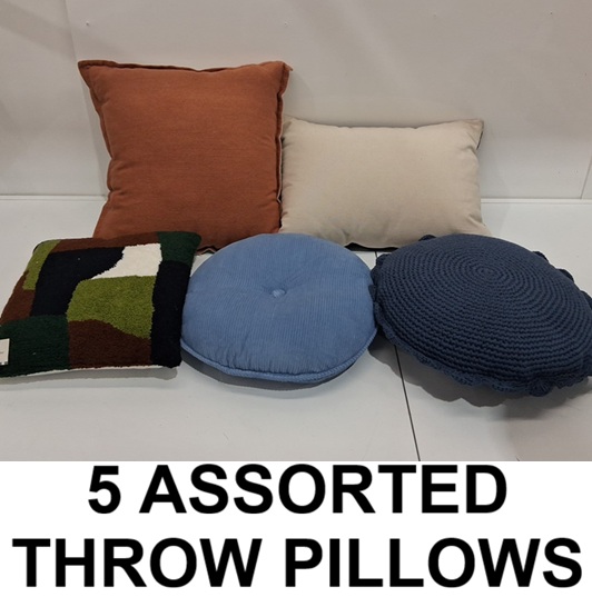 5 ASSORTED THROW PILLOWS - VARIOUS SIZES/COLOURS