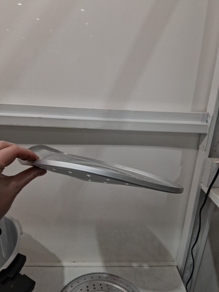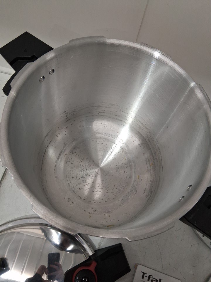 items trays are warped but can be bent back, bottom of pressure canner has some markings as well (see photo)