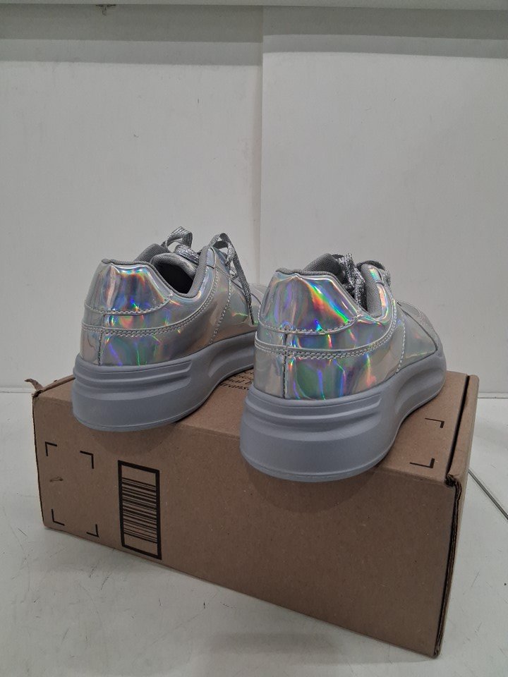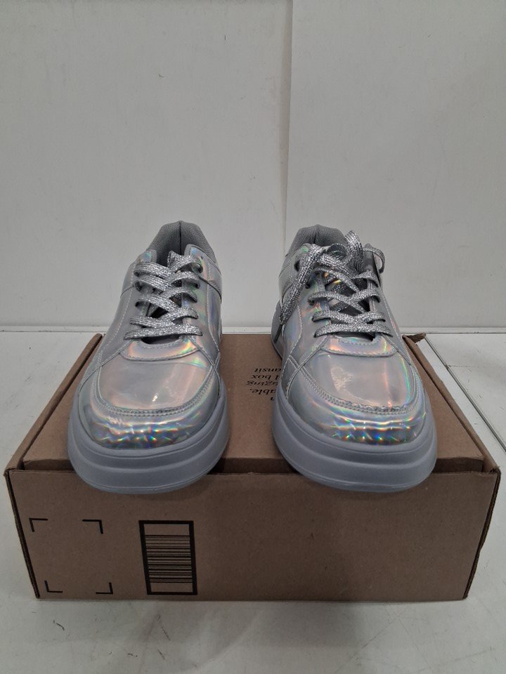 Women's Thick Sole Lace-Up Sneakers - Size 11 - Metallic Silver