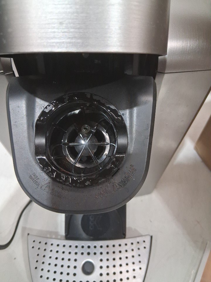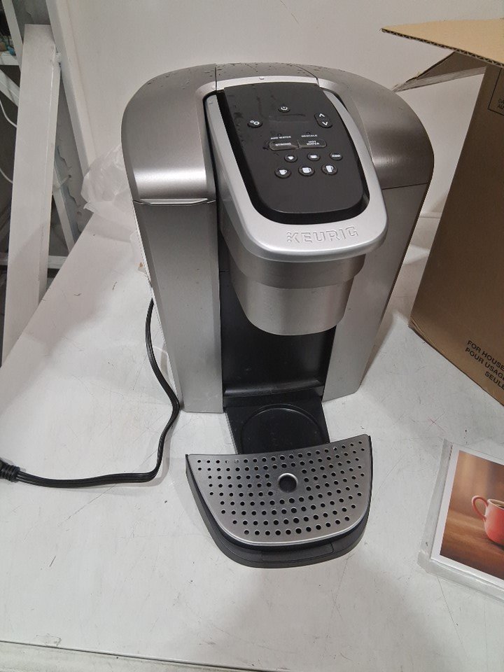 tested for basic power. water was on item and inside the pod holder has coffee grinds. the base of the cup holder is scratched.