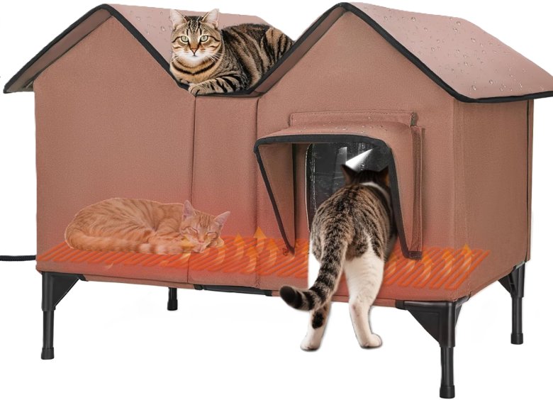 HXPLN Indoor Outdoor Heated Insulated Two Section Cat House - Dark Brown (Model: ‎HCH25-580B)