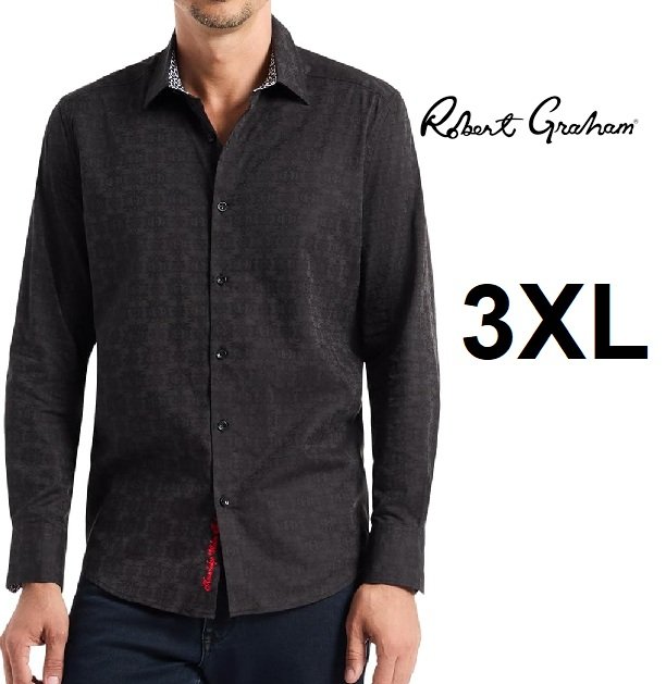 men's robert graham long sleeve Bayview Cotton Button-up classic fit collared shirt - 3xl - black