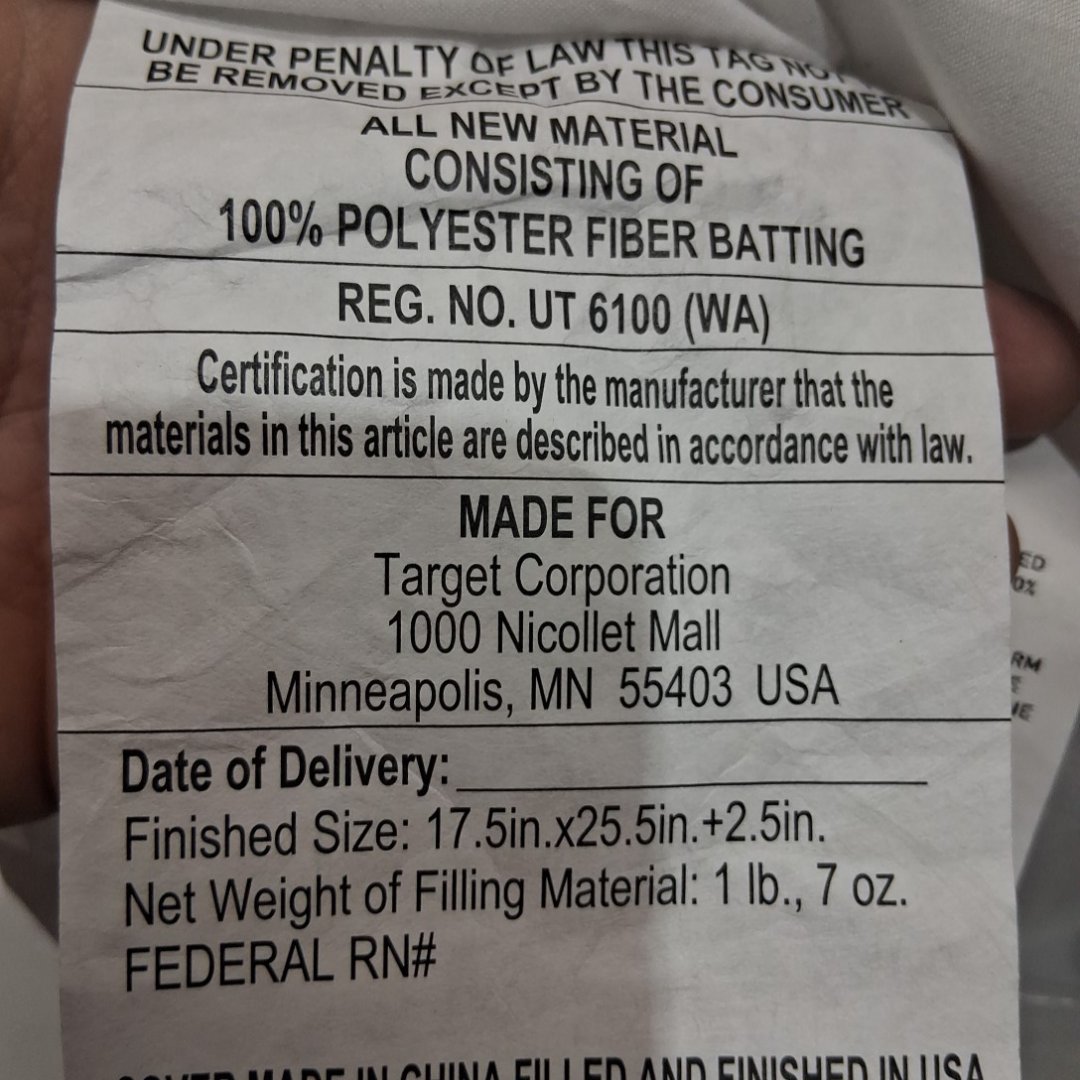 Room Essentials Firm Machine Washable Overfilled Plush Bed Pillow - QUEEN - WHITE (MODEL: 062 05 0058)