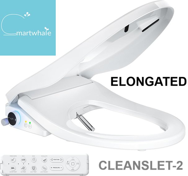 smartwhale electric bidet elongated toilet seat - 20.05" x 14.01" - white (model: cleanslet-2)