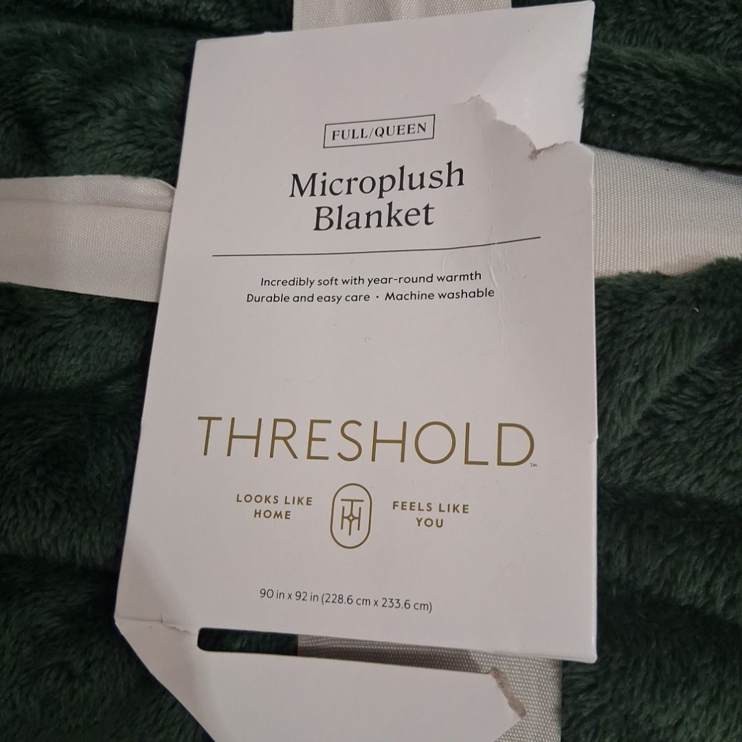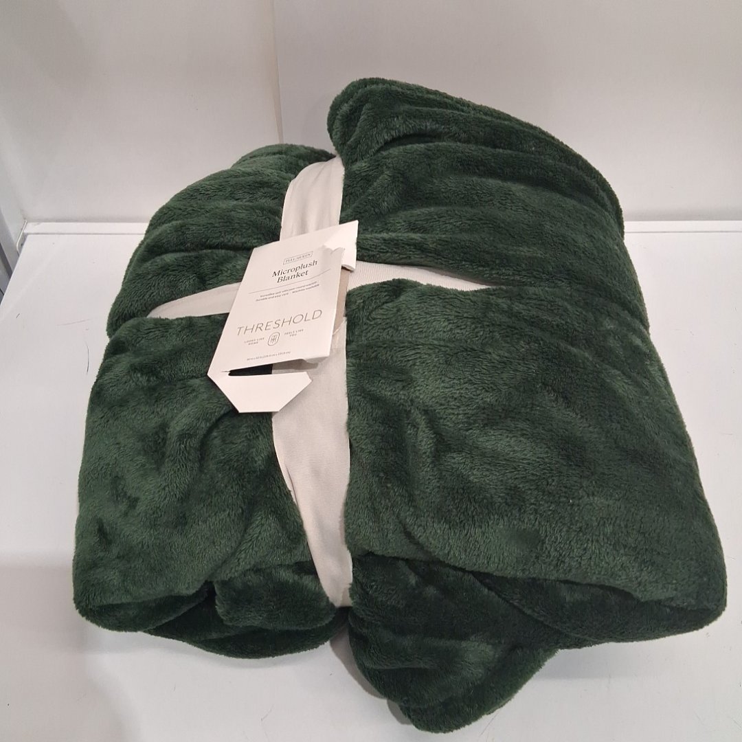 THRESHOLD Microplush Blanket - FULL/QUEEN - DARK GREEN