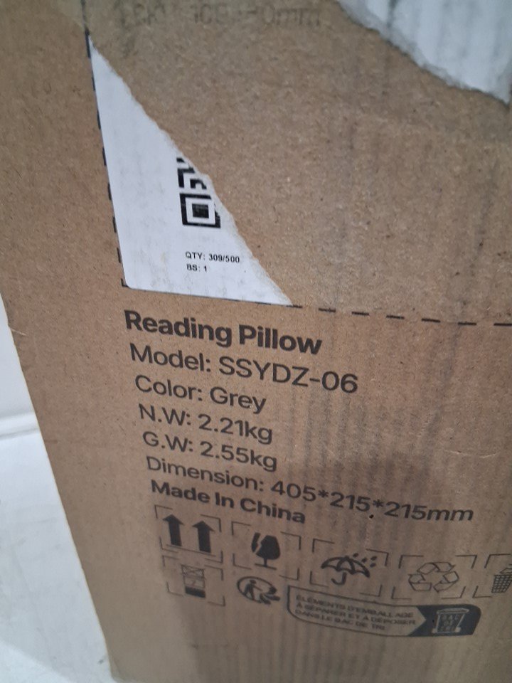 Reading Pillow, Backrest Support Pillow with Arm and 3 Pockets - grey (model:SSYDZ-06)