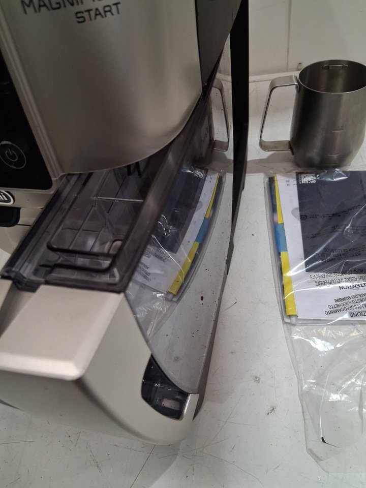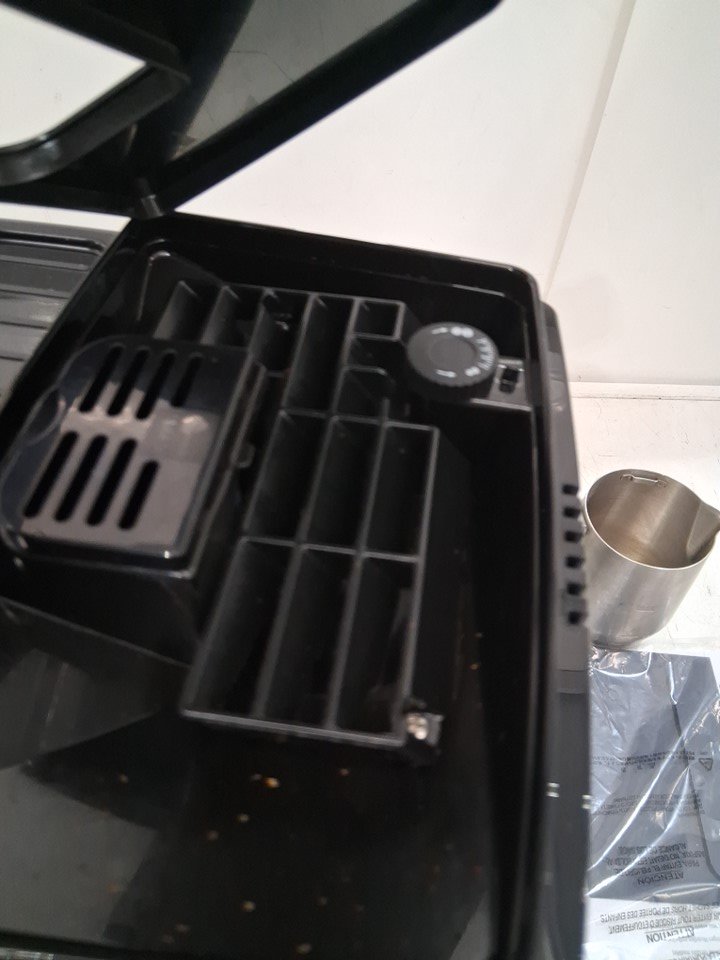Item has coffee beans and residue along with water marks from prior use it has been tested for power.