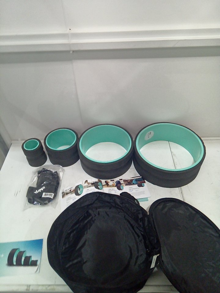 4pc Chirp Wheel + Back Stretcher FOAM ROLLER SET - 12", 10", 6", 4" - black/blue (model: ‎4P-PW-PLUS-FBA)