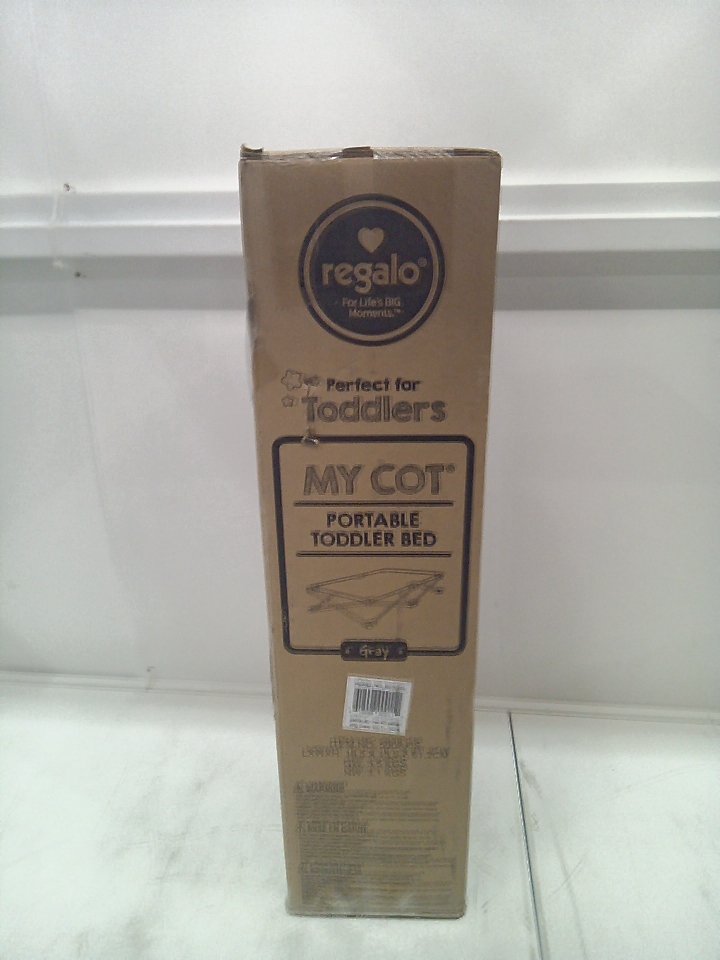 Regalo My Cot Portable small toddler Travel Bed Compact Lightweight and Portable - 48” L x 24” W x 9” H - Grey (Model: 5009 DS)