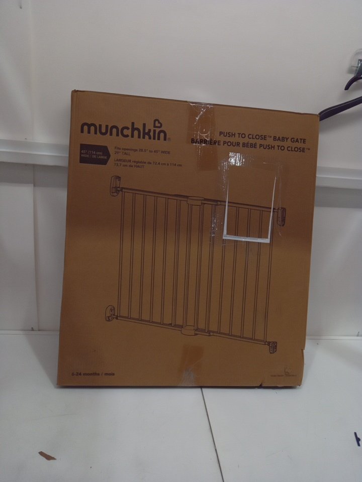 MUNCHKIN PUSH TO CLOSE BABY GATE FOR STAIRS WITH HARDWARE - 27" x 30.5" x 2.25" - BLACK - (MODEL: 46777001-SIOC)