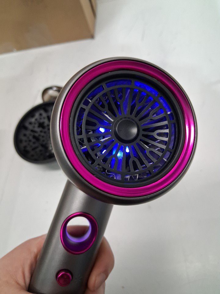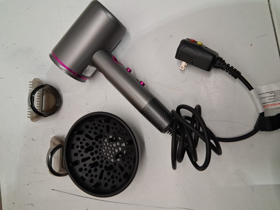 DXliwky Professional hair dryer with diffuser, concentrator, comb nozzles - 1875W - Silver/pink (model: m-777)
