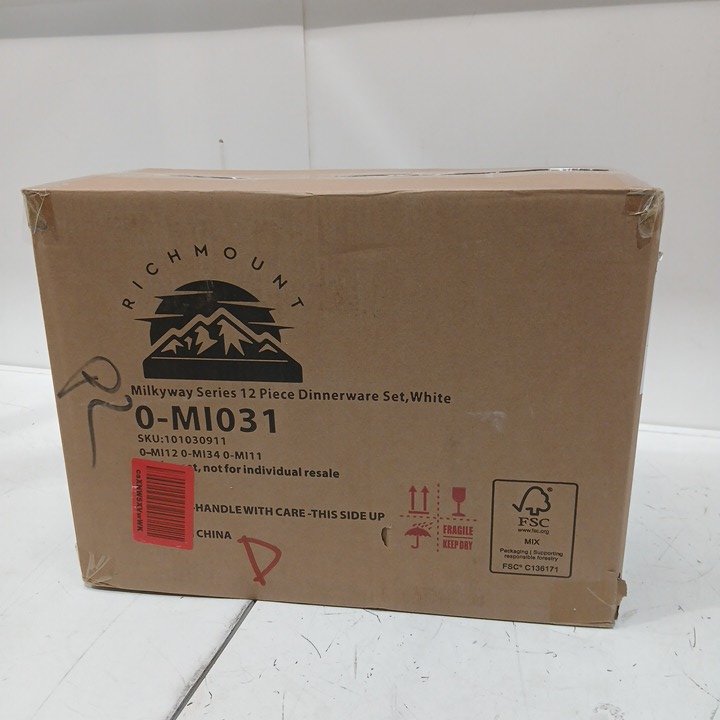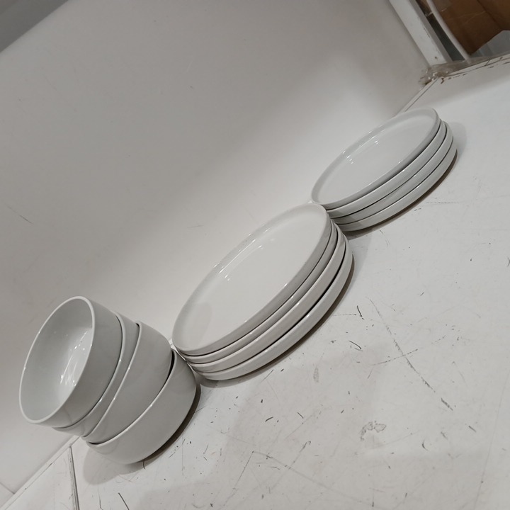 12pc richmount milkyway series dinnerware plates and bowl set for 4 - white (model: 0-MI0324)