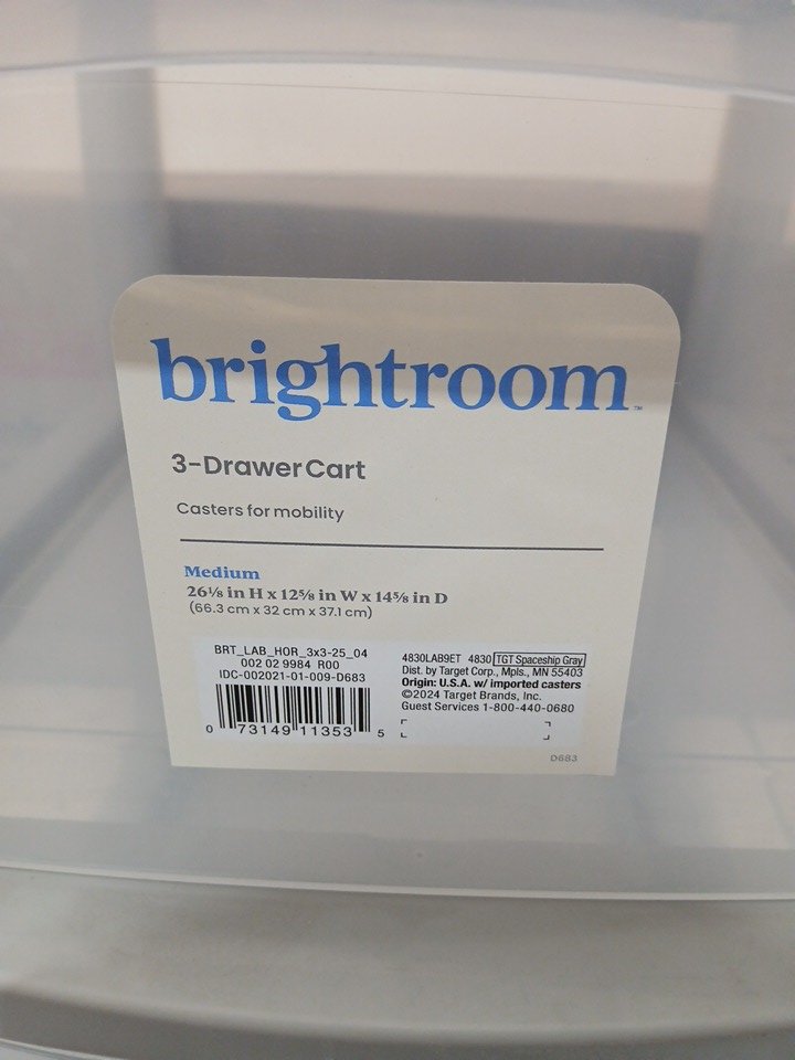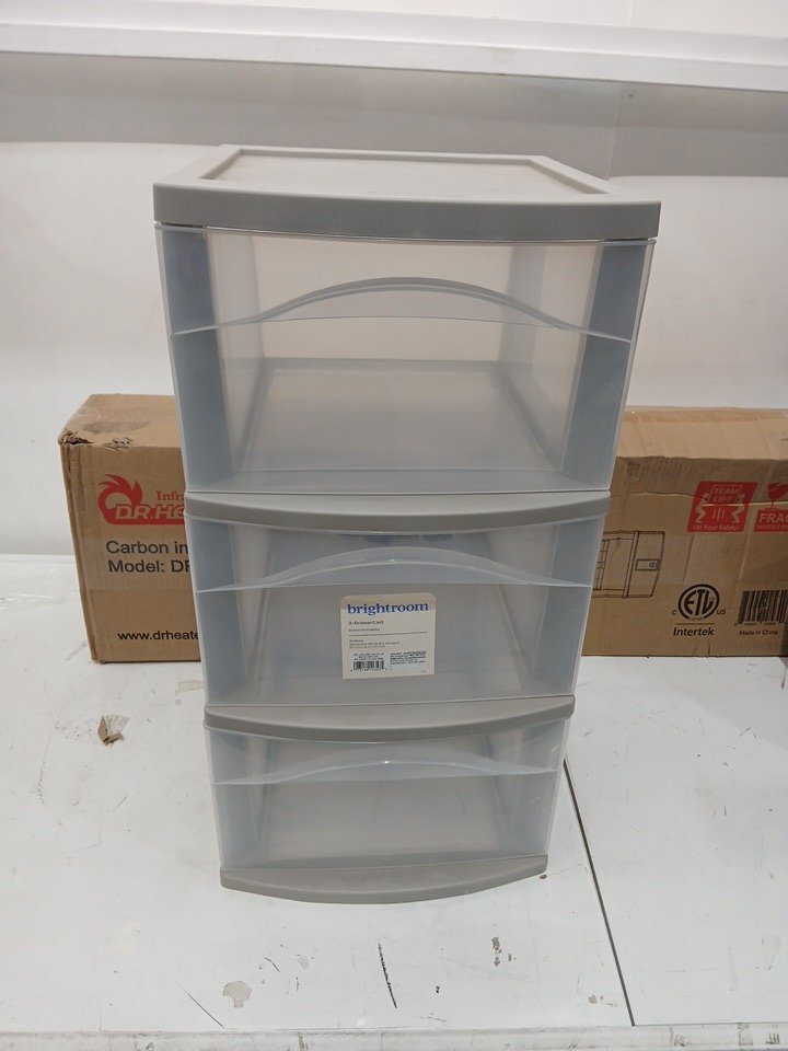 brightroom Plastic ROLLING 3-Drawer Storage Cart ORGANIZER - 26" x 12" - light grey