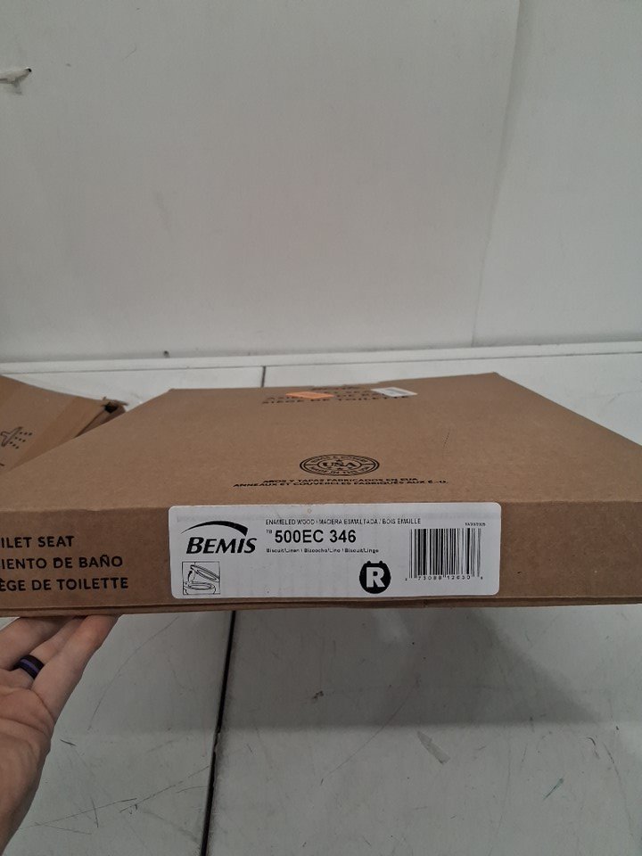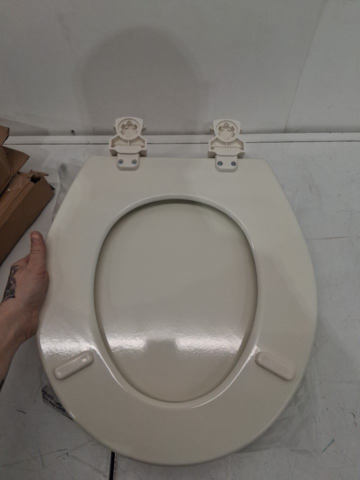 BEMIS MOLDED WOOD ELONGATED TOILET SEAT WITH EASY CLEAN - BISCUIT/LINEN (MODEL: 1500EC346)