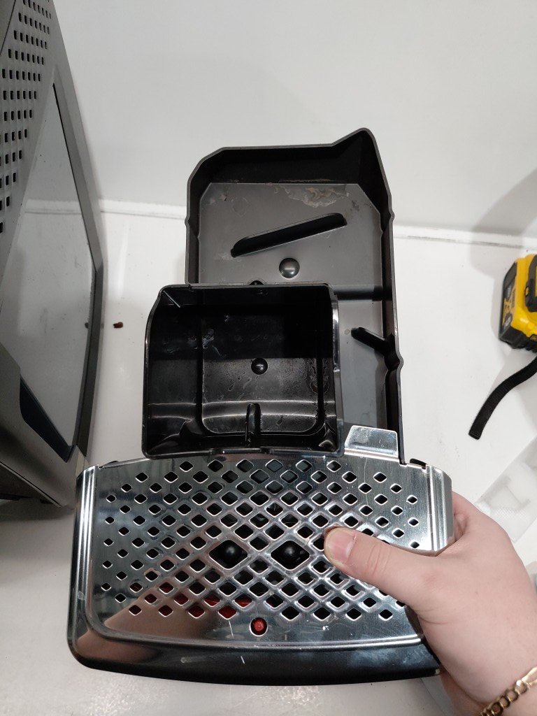 missing front trim panel previously used (coffee residue) tested for power.