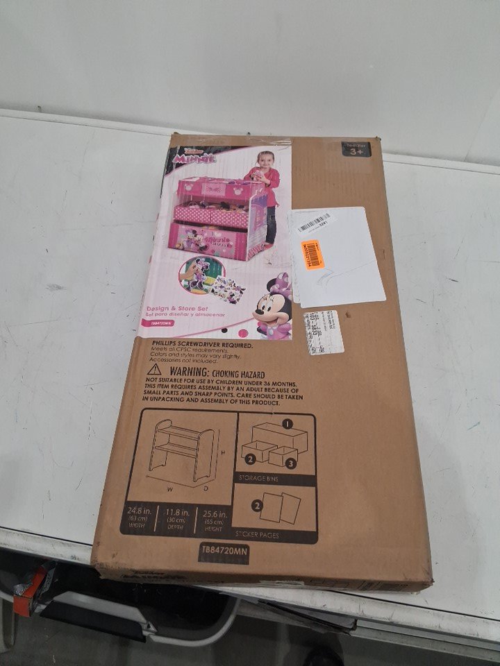 DELTA CHILDREN DESIGN AND STORE 6 BIN STORAGE ORGANIZER - 24.61”L x 11.81”W x 26.57”H - MINNIE MOUSE - (MODEL: ‎TB84720MN)