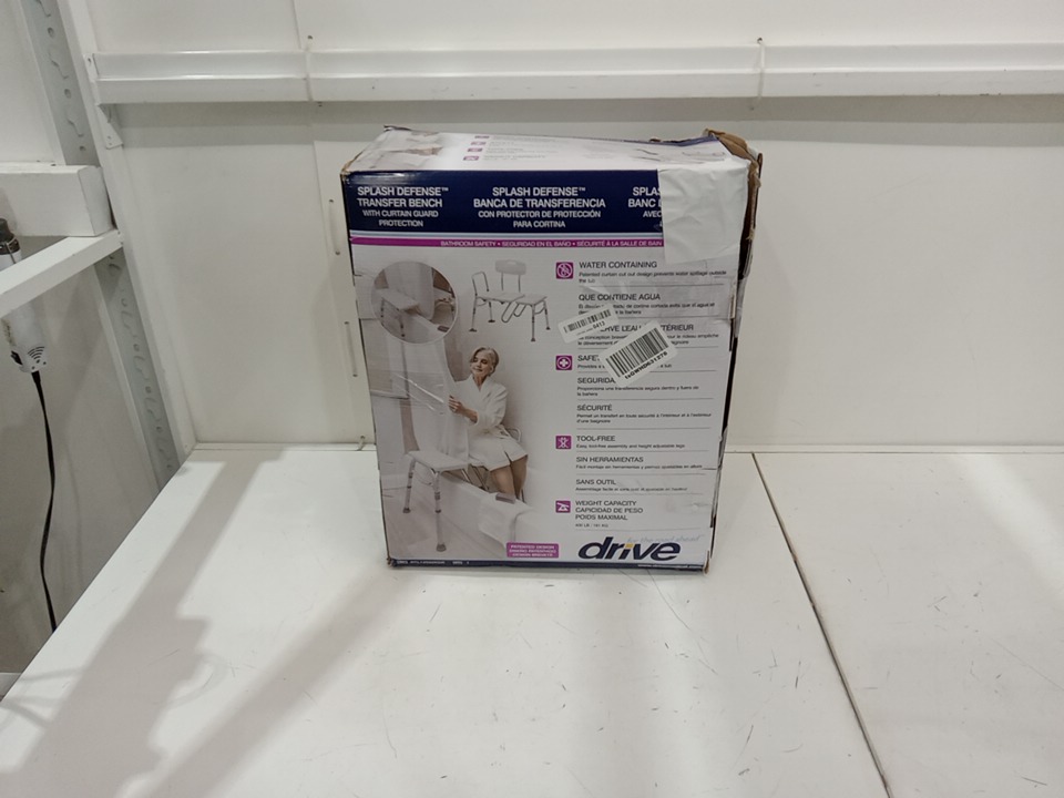 Drive Medical Splash Defense Tub Transfer Bench for Bathtub with Curtain Guard Protection - 400LB MAX, 28" L x 16" D - WHITE AND SILVER - (MODEL: RTL12032KDR)