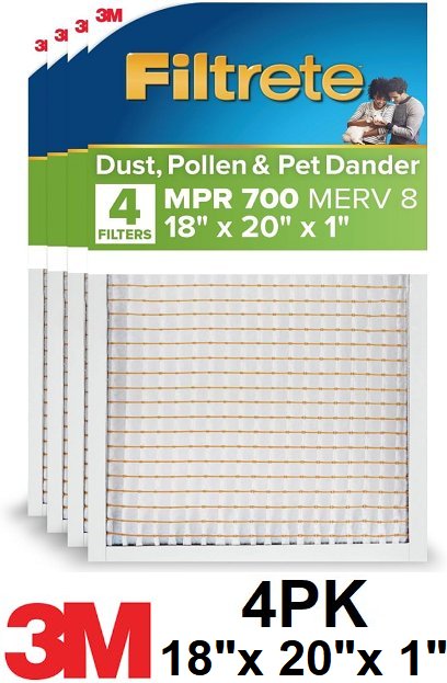 4pk 3m Filtrete MERV 8 MPR 700 Dust, Pollen & Pet Dander Reduction Air Filters - 18" x 20" x 1"
