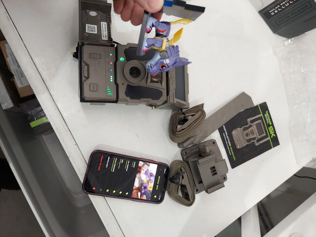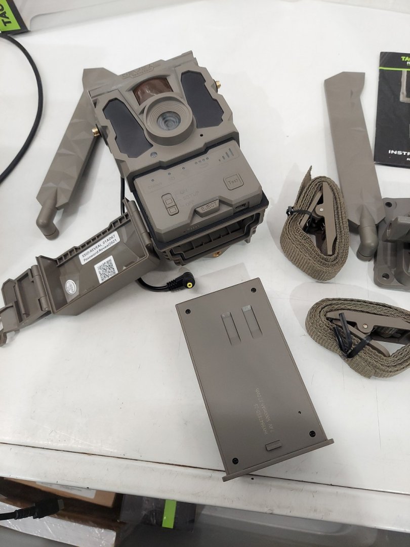 Item arrived with signs of light use on the back of the plastic tree mount plate but nothing significant and nothing that should effect use. tested for power and function with wifi & app connectivity. Please note that this item only works via cellular network with verizon and at&t in the US but the item can still be used in canada with the app or locally by using an SD card.