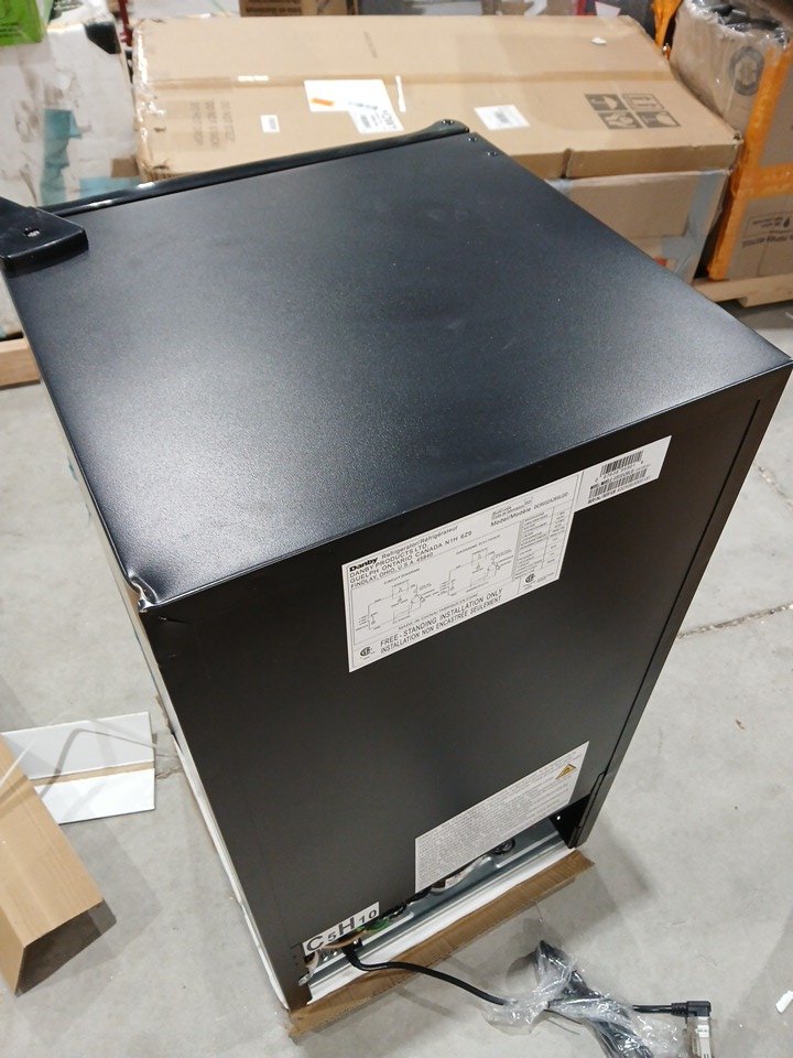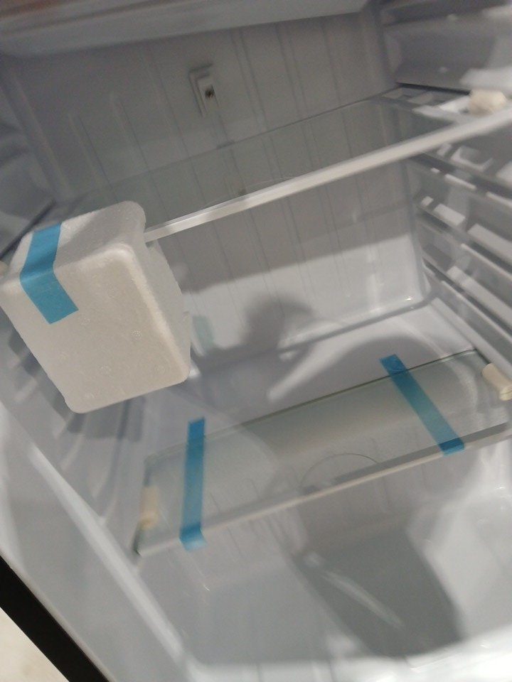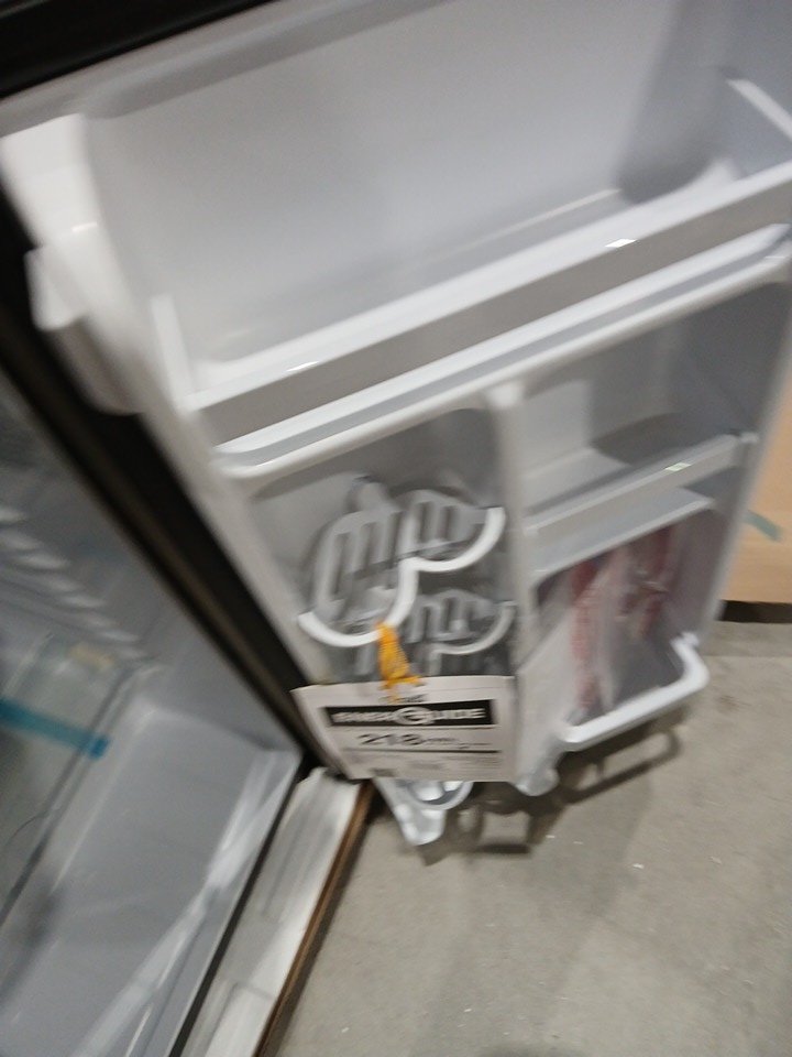 Please note there is a dent on the side of the fridge, see photos. One of the feet are missing.