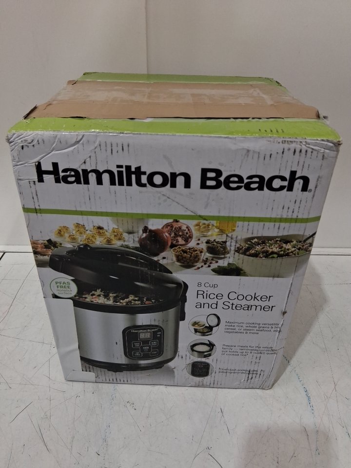 Hamilton Beach Rice Cooker and Steamer - 8 Cup Capacity - Black/Silver (Model: 37518MN)