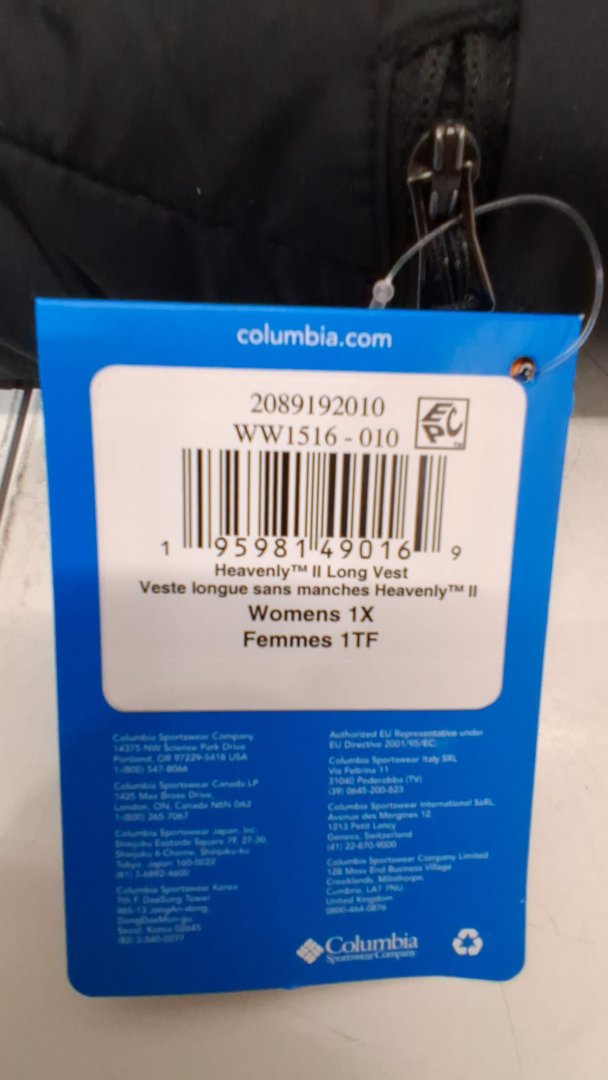 women's columbia heavenly II long vest - 1X - black (model: WW1516-010)