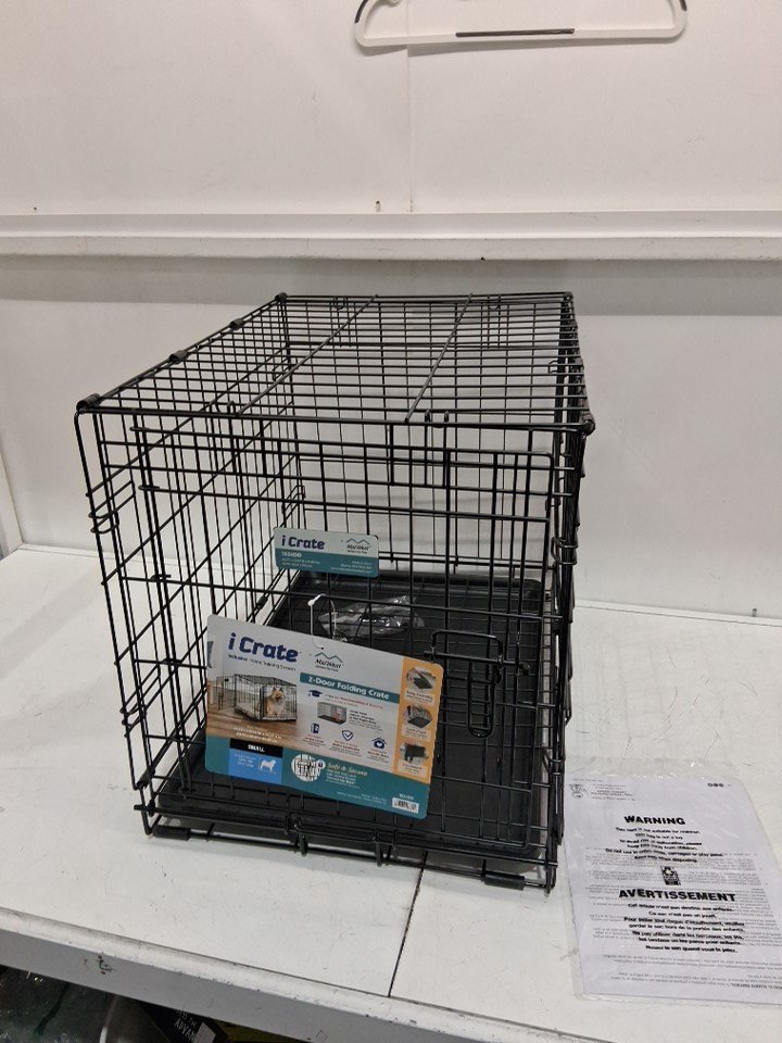 MIDWEST ICRATE DOUBLE DOOR FOLDING METAL DOG CRATE WITH LEAK PROOF TRAY - 24" x 18" x 19" (small) - BLACK (MODEL: 1524DD)