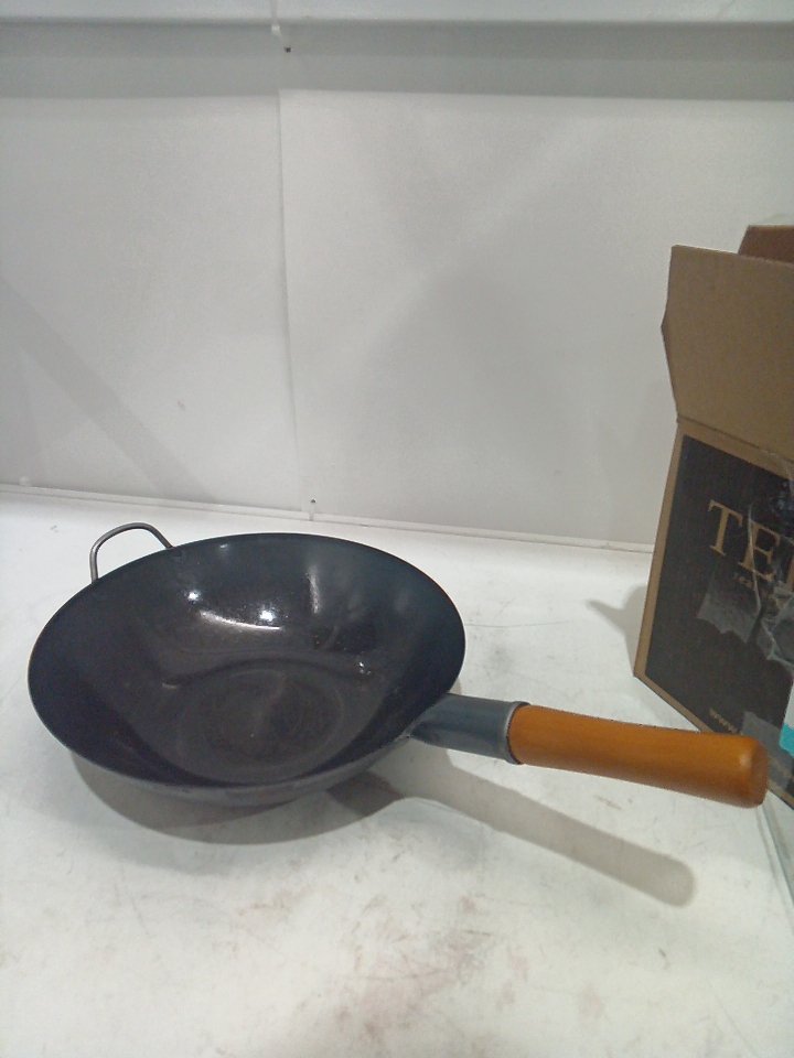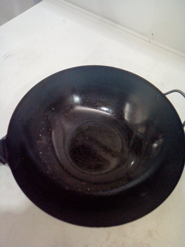 There is oil, scratches and burn markings on the wok. (SEE PHOTOS)