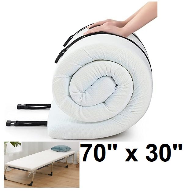 JAMDOK GEL INFUSED MEMORY FOAM COT MATTRESS TOPPER - 70" x 30" - white