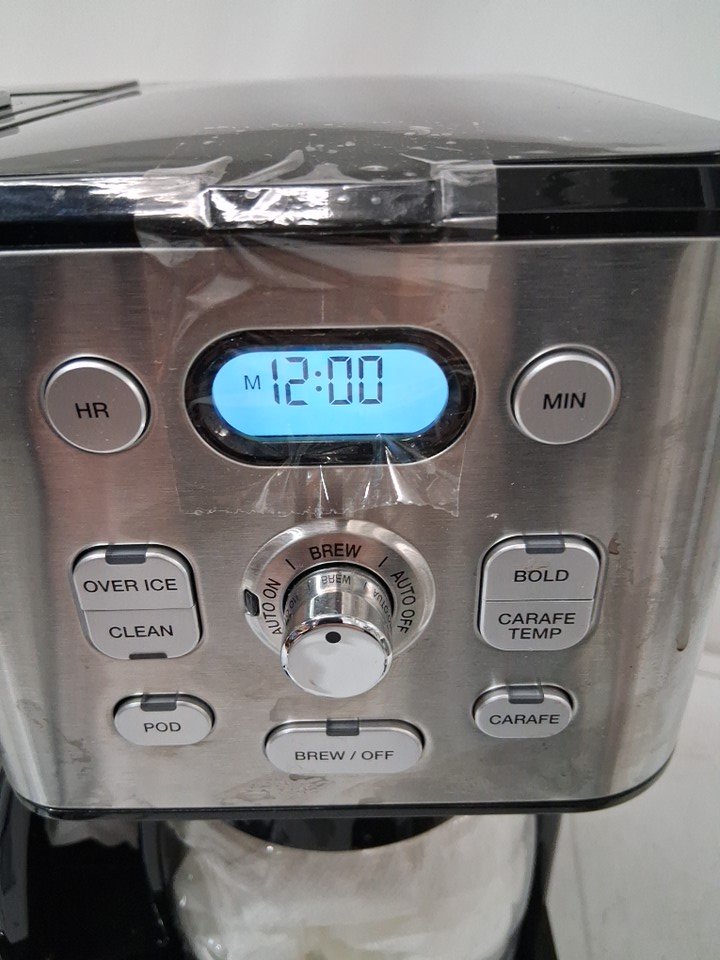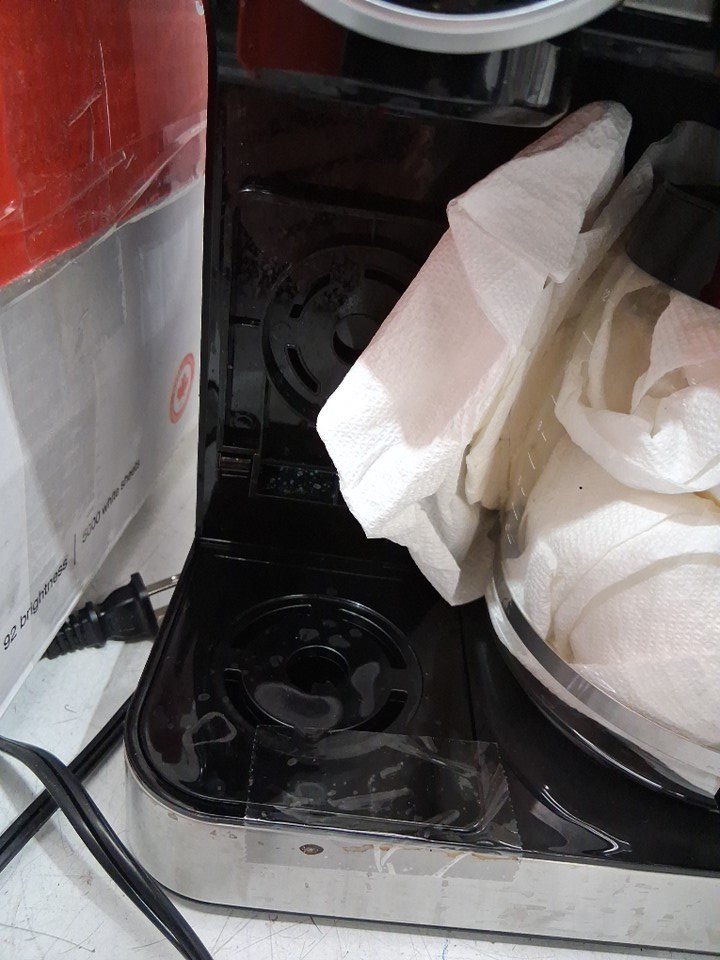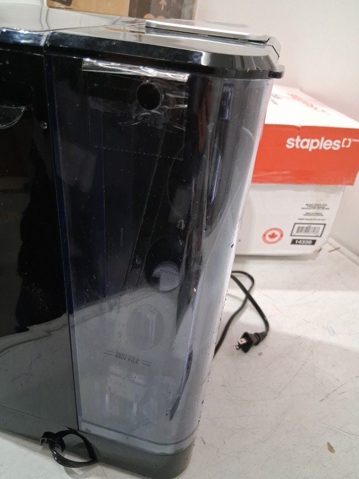 tested for power. please note there are markings and water residue on the machine from previous use. there is some cracked plastic in the back, it should not affect the function. see photos.