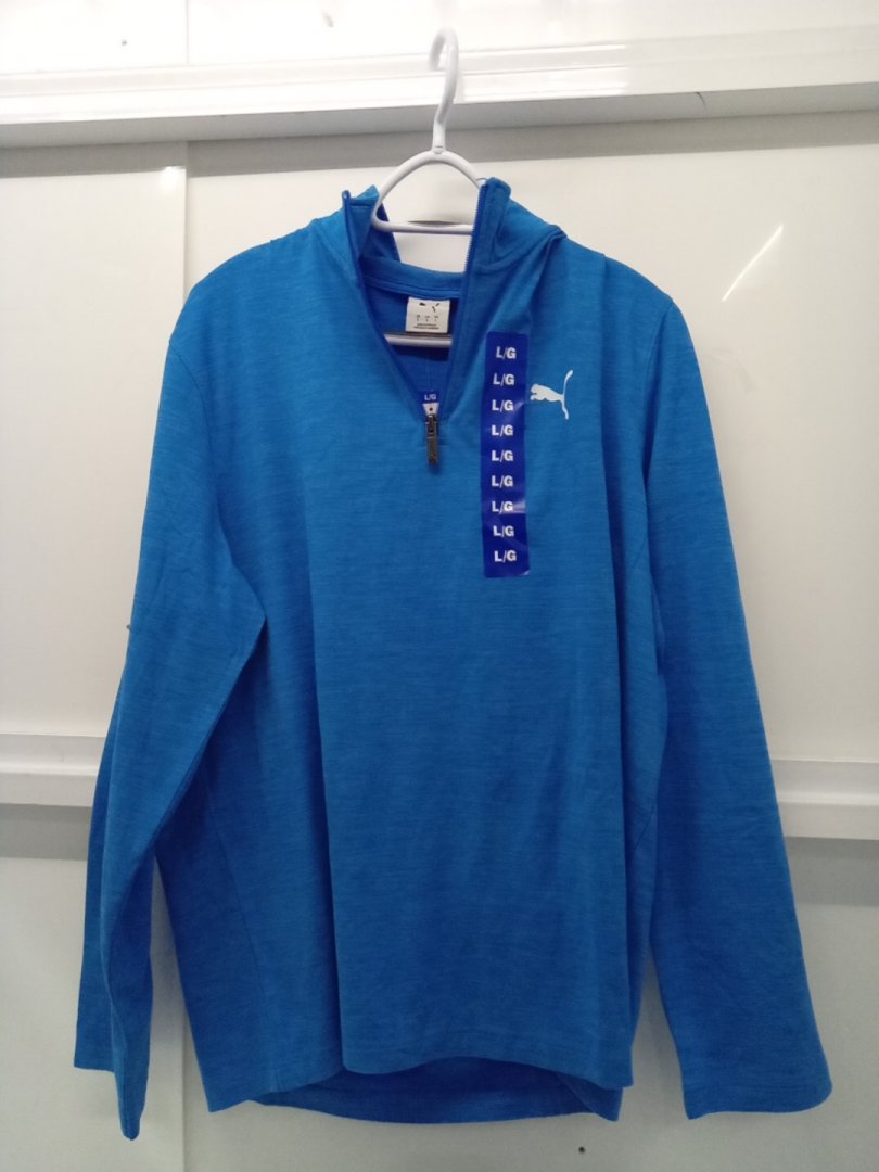 Men's Puma Quarter Zip Long Sleeved Sports Shirt - Large - Blue (Style: 1864327)