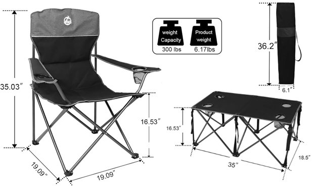 Missing 2person foldable loveseat. Along with the clip for the table bag is broke.