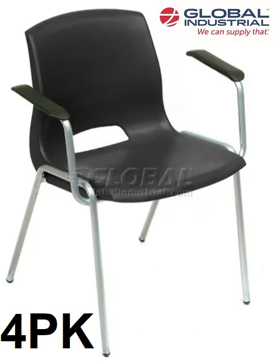 4pk global industrial interion merion collection stacking chairs - black - (model: 921397bk)