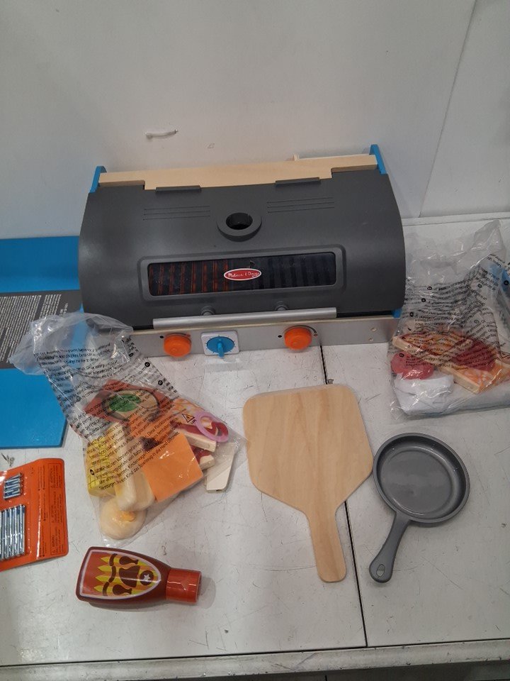 62PC Melissa & Doug Wooden Deluxe Barbecue Grill, Smoker and Pizza Oven - 1.5+ years - multi-colour (model: 30608)