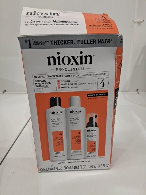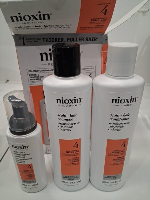 3PC NIOXIN 4 3-STEP CARE TREATMENT FOR NATURAL, PROGRESSED THINING CHEMICALLY TREATED HAIR - 300ML SHAMPOO; 300ML CONDITIONER; 100ML SCALP TREATMENT - COLOR SAFE