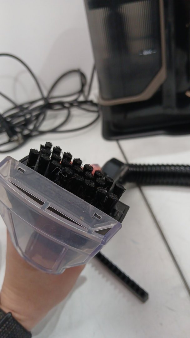 item was tested and working (no indicator light) light water droplets in the reservoir as well as some hair on the brush head from previous use the solution is half empty