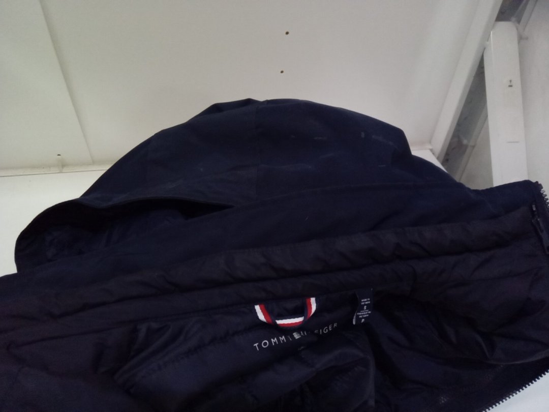 small dirt spots on hood and signs of wear on the inner collar from prior use.