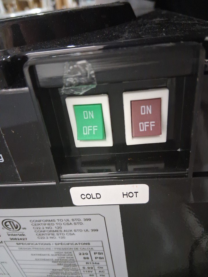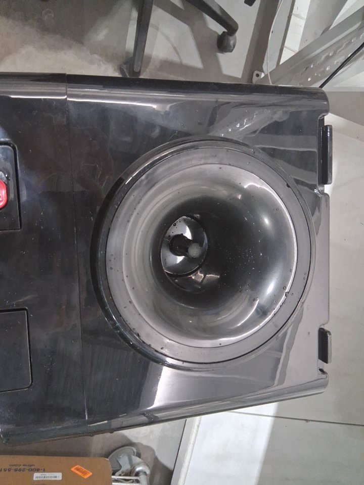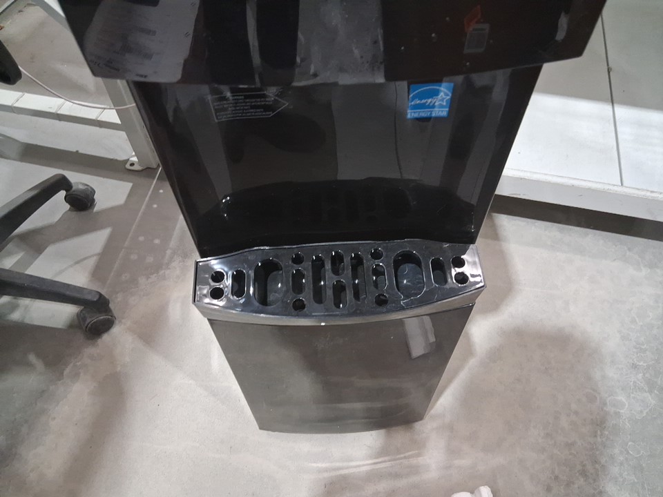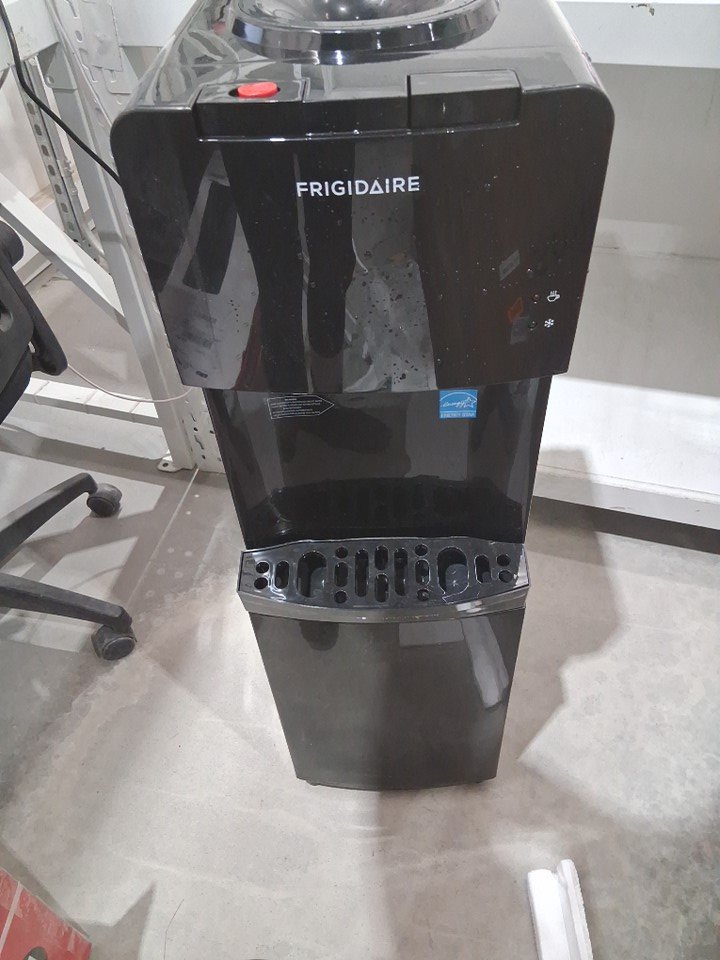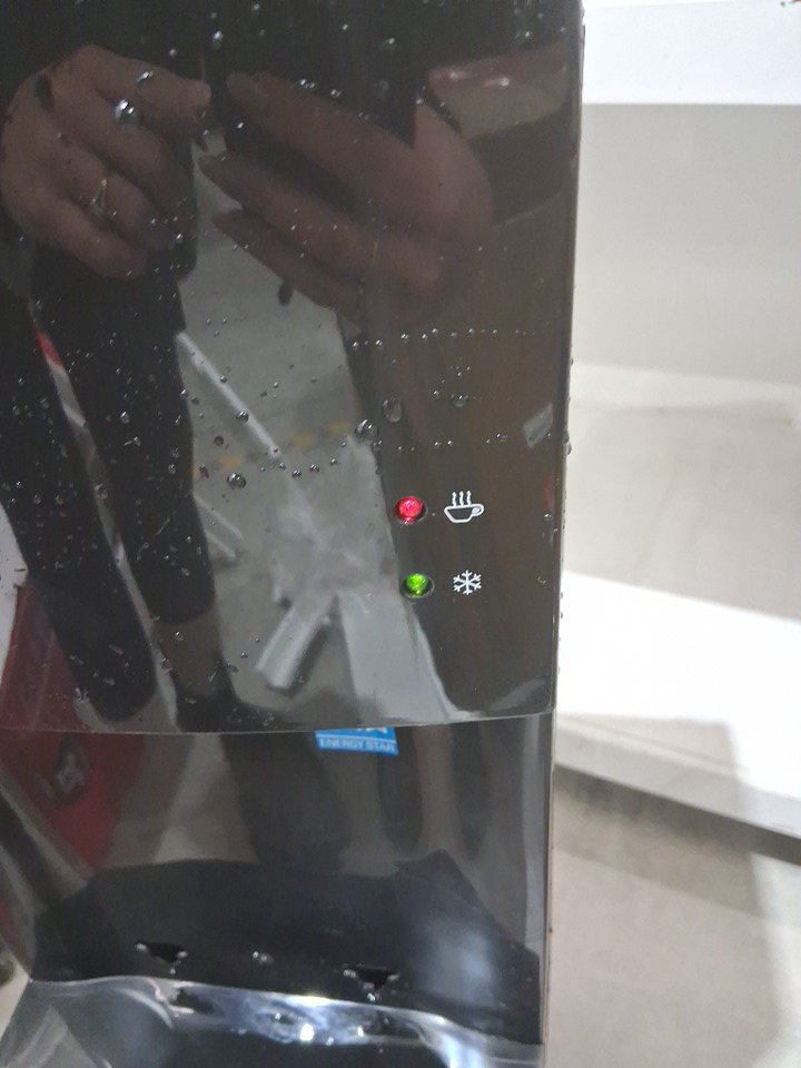 there is water residue on the entirety of the item. light scratches on the front door. and hard water staining. tested for basic power.