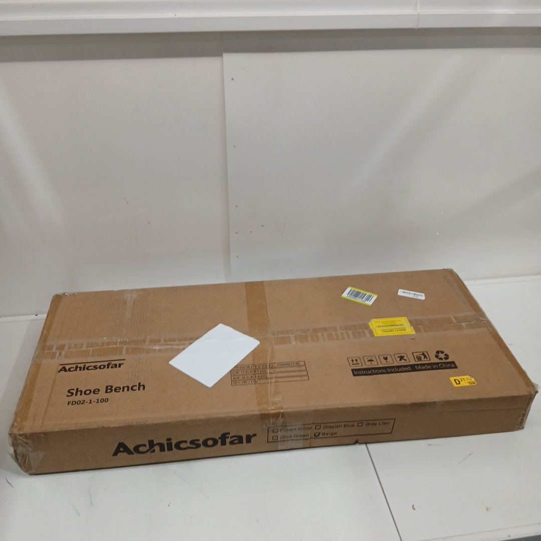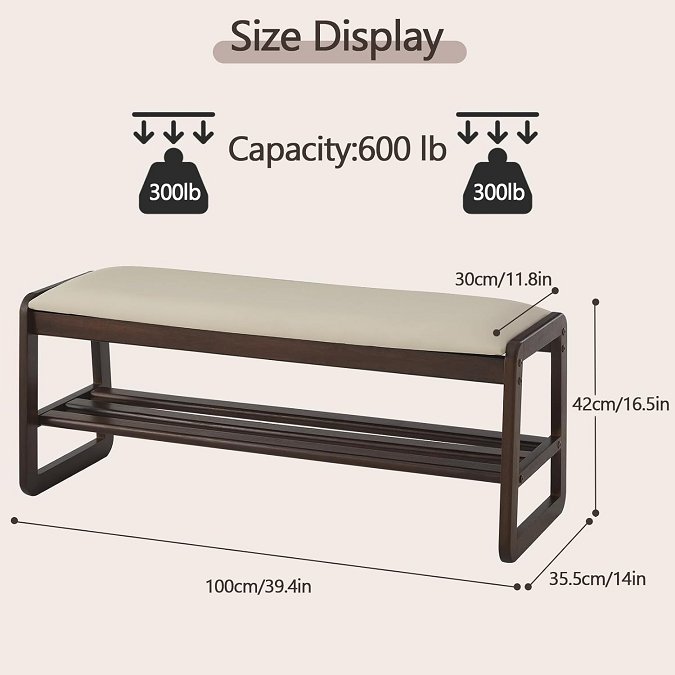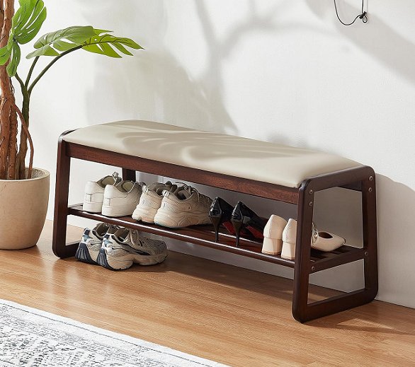 ACHICSOFAR 2-TIER WOODEN ENTRYWAY BENCH, SHOE STORAGE WITH CUSHION - 39.4" X 14" X 16.5" - BEIGE (MODEL: FD02-1-100)
