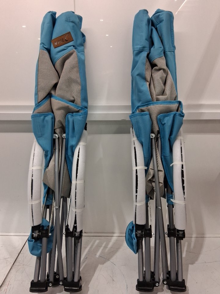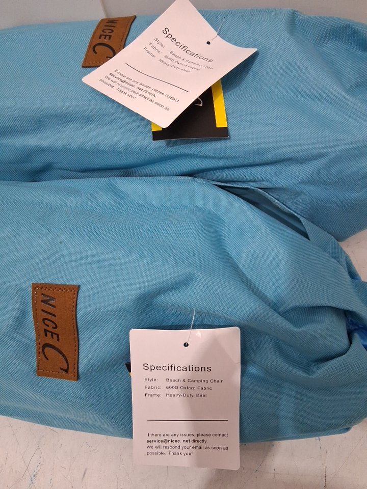 2pk nice c foldable beach & camping chair with cup holder & carrying bag - blue/grey
