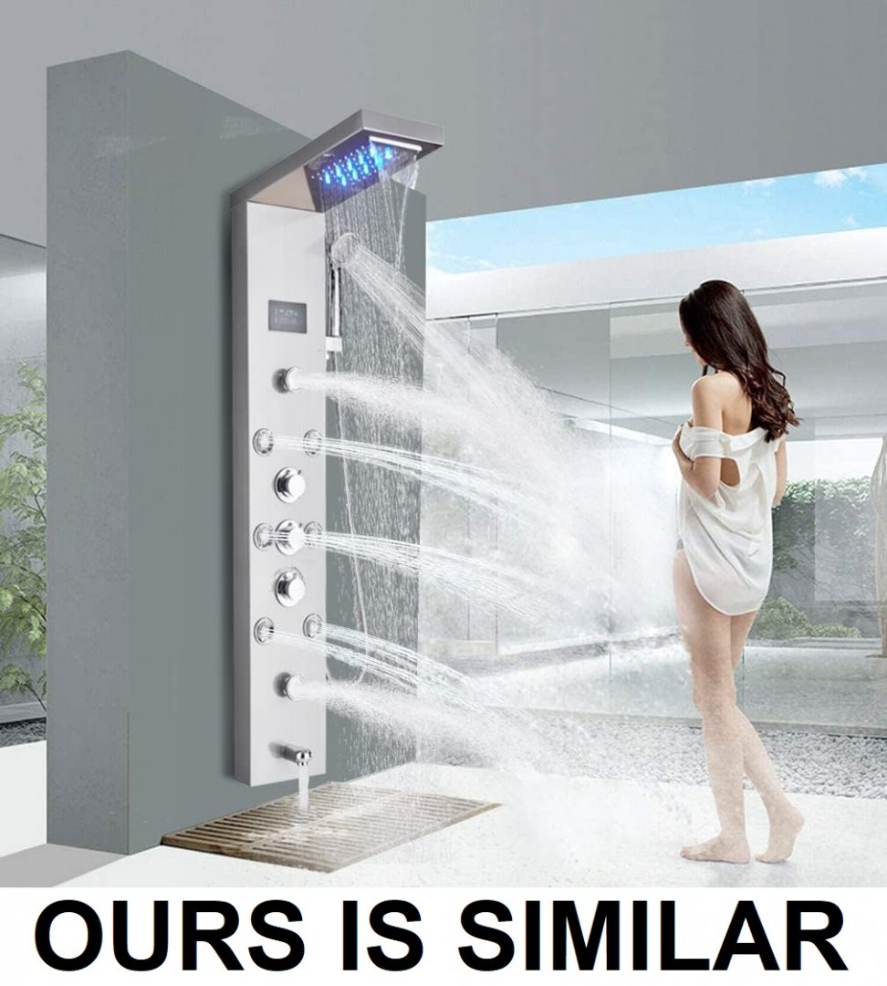 FUZ Contemporary Shower Panel Tower System Stainless Steel 6-Function Faucet LED Rainfall Waterfall Shower Head - STAINLESS STEEL
