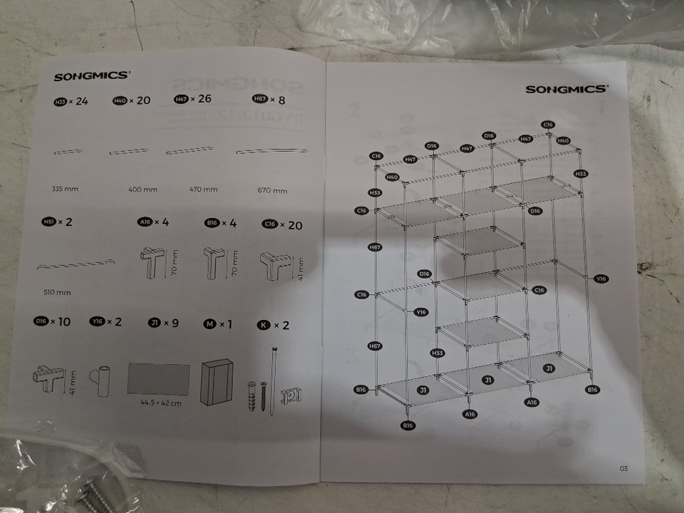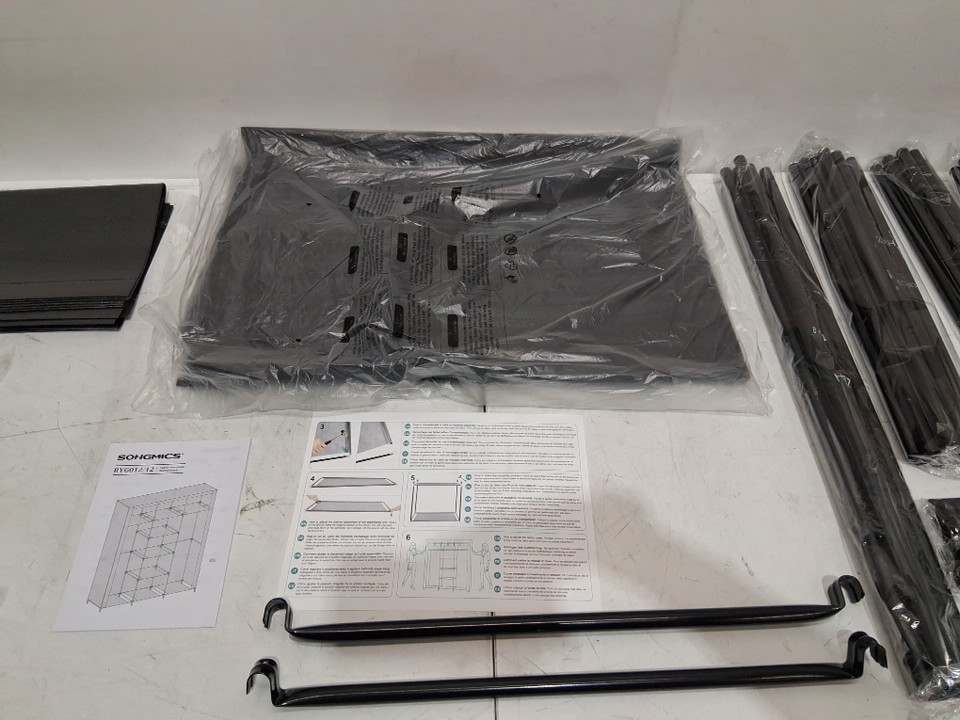 SONGMICS PORTABLE CLOSET, NON-WOVEN FABRIC STORAGE ORGANIZER WARDROBE - 59" - BLACK/GREY (MODEL: RYG12H)