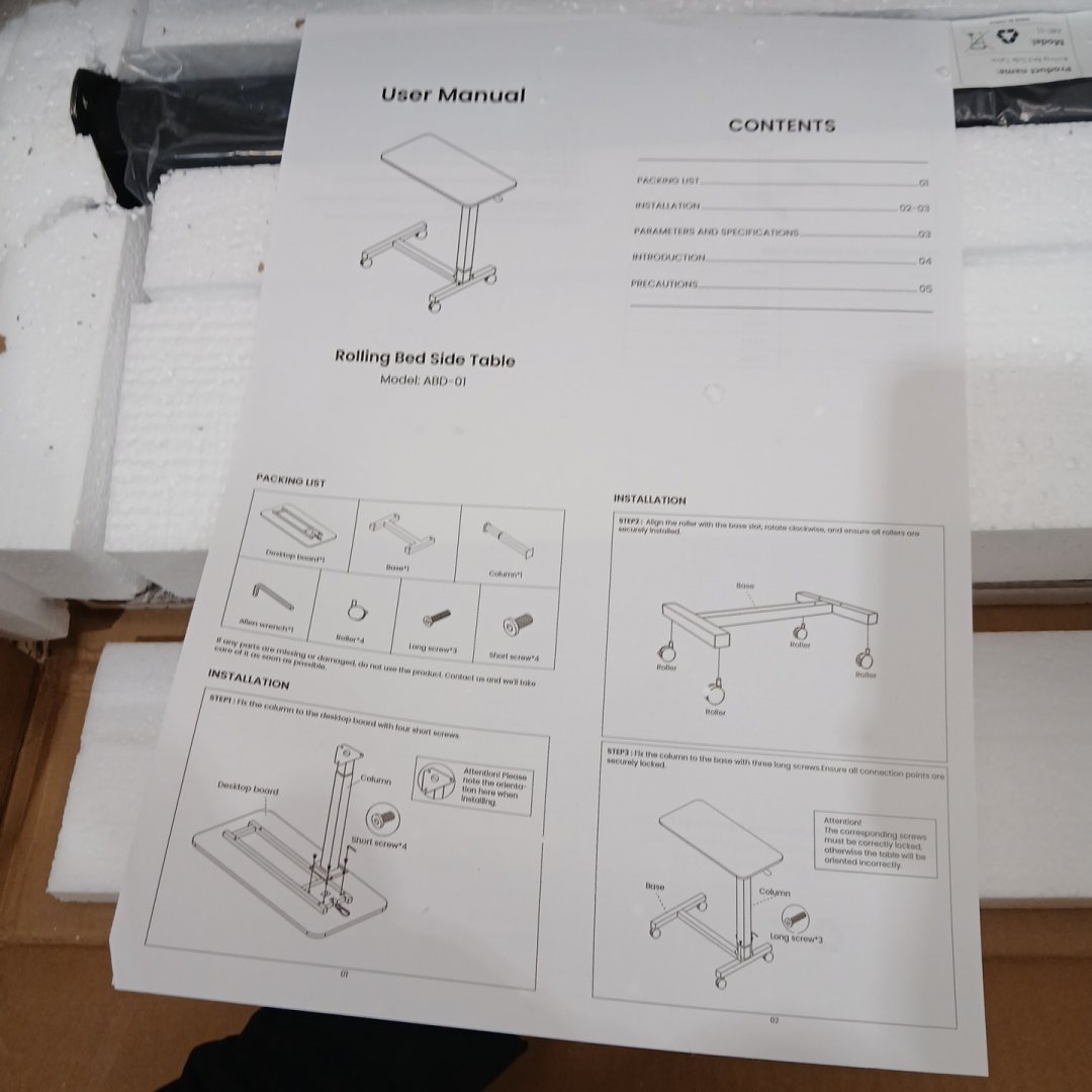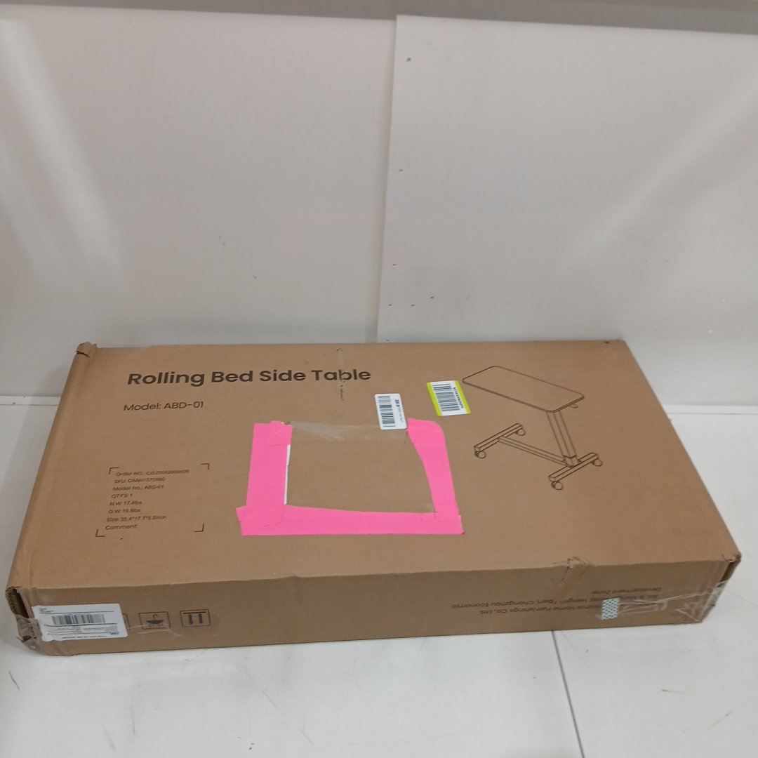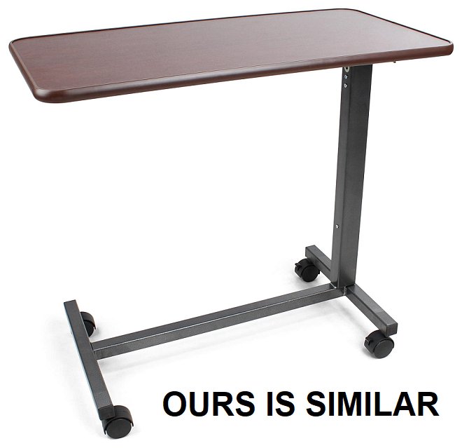 ROLLING BED-SIDE C SHAPE TABLE WITH ADJUSTABLE HEIGHT - BROWN, BLACK FRAME (MODEL: ABD-01)